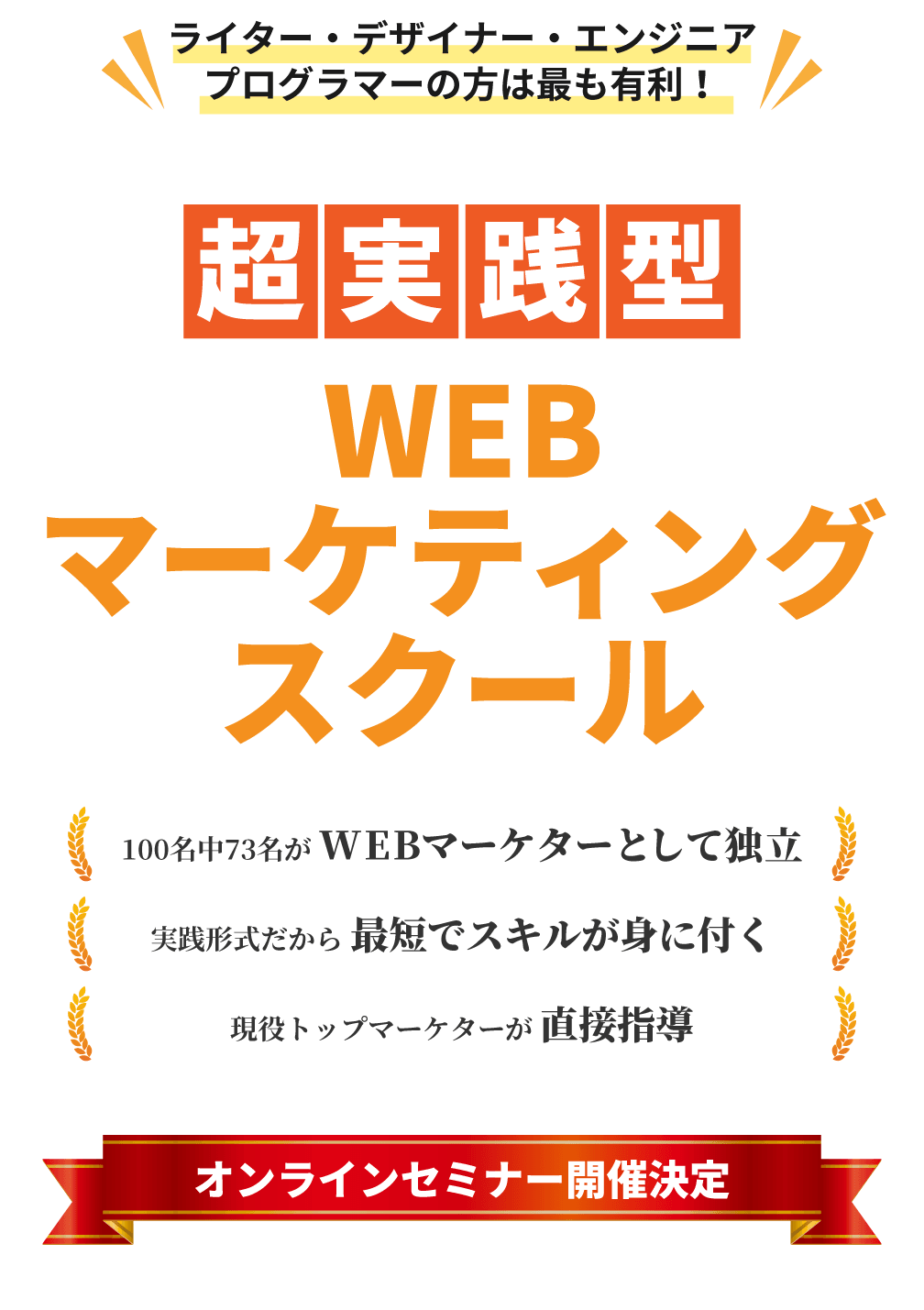 現役マーケターから、現場で使える実践的なマーケティングノウハウが学べます。将来、WEBマーケターとして活躍したい方は、必見です。(他では絶対聞けない情報となっています)